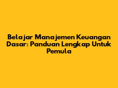 Belajar Manajemen Keuangan Dasar: Panduan Lengkap Untuk Pemula