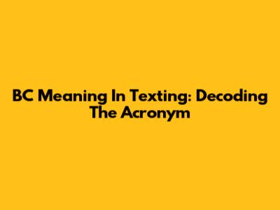 BC Meaning In Texting: Decoding The Acronym