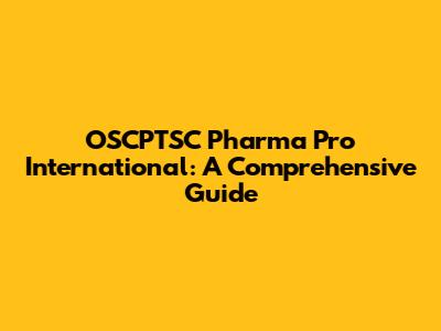 OSCPTSC Pharma Pro International: A Comprehensive Guide