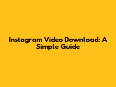 Instagram Video Download: A Simple Guide