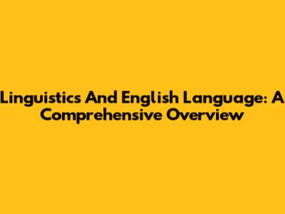 Linguistics And English Language: A Comprehensive Overview