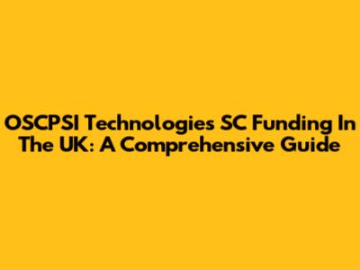OSCPSI Technologies SC Funding In The UK: A Comprehensive Guide