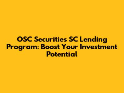 Hey guys! Let's dive into how you can seriously level up your investment game with the OSC Securities SC Lending Program. If you're looking for ways to maximize your portfolio and take advantage of market opportunities, you've come to the right place. This program is designed to give you extra firepower, allowing you to leverage your existing assets for potentially greater returns. So, buckle up, and let’s explore how this works and why it might be the perfect strategy for you.