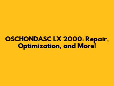 Optimizing Your OSCHONDASC LX 2000