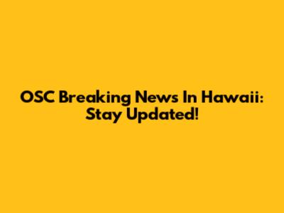 OSC Breaking News In Hawaii: Stay Updated!