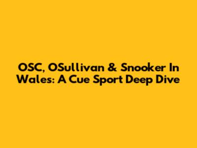 OSC, O'Sullivan & Snooker In Wales: A Cue Sport Deep Dive
