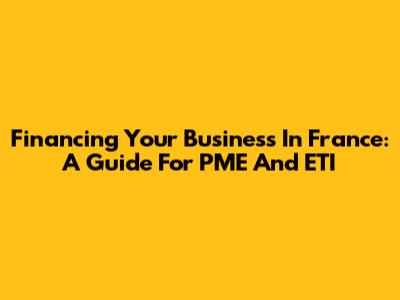 Financing Your Business In France: A Guide For PME And ETI