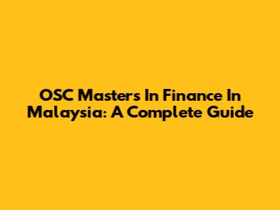 OSC Masters In Finance In Malaysia: A Complete Guide