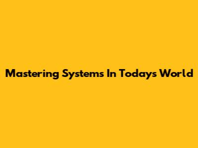 Mastering Systems In Today's World