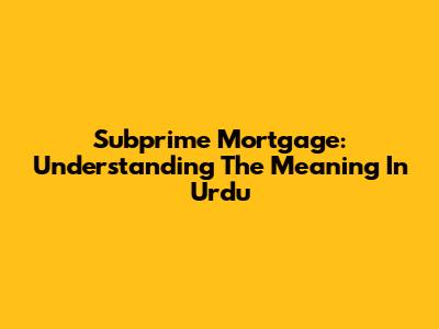 Subprime Mortgage: Understanding The Meaning In Urdu