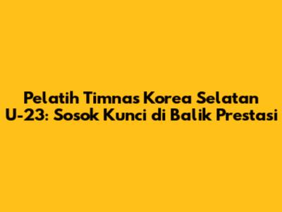 Pelatih Timnas Korea Selatan U-23: Profil, Strategi, Dan Peran Pentingnya