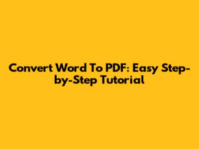 Convert Word To PDF: Easy Step-by-Step Tutorial