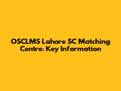 OSCLMS Lahore SC Matching Centre: Key Information