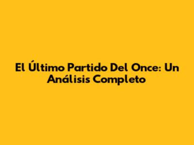 El Último Partido Del Once: Un Análisis Completo