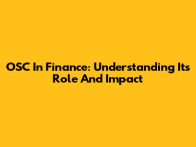 OSC In Finance: Understanding Its Role And Impact