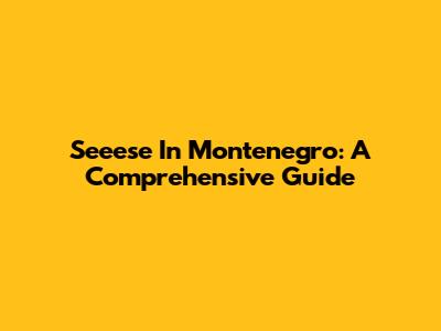 Seeese In Montenegro: A Comprehensive Guide