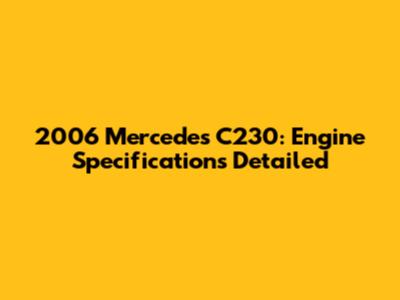 2006 Mercedes C230: Engine Specifications Detailed