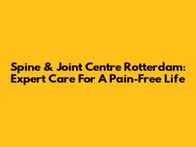 Spine & Joint Centre Rotterdam: Expert Care For A Pain-Free Life