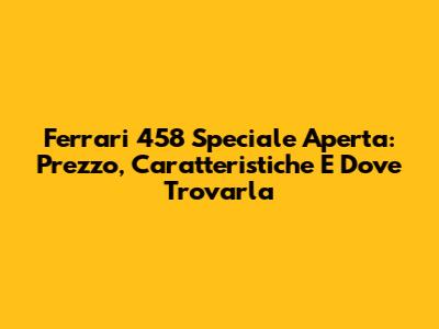 Ferrari 458 Speciale Aperta: Prezzo, Caratteristiche E Dove Trovarla