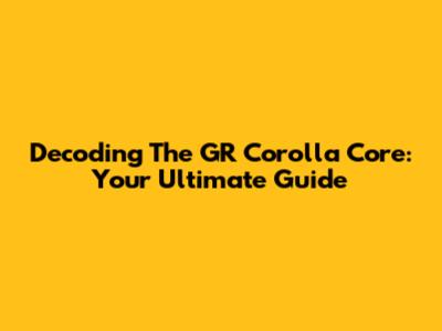 Decoding The GR Corolla Core: Your Ultimate Guide