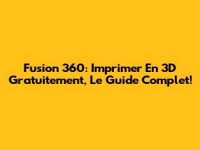 Fusion 360: Imprimer En 3D Gratuitement, Le Guide Complet!