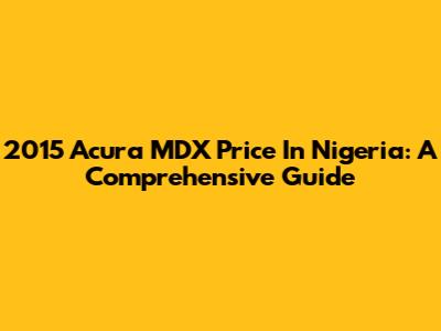2015 Acura MDX Price In Nigeria: A Comprehensive Guide