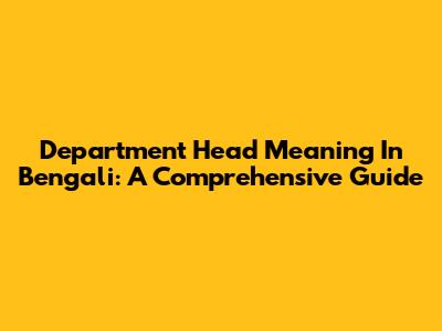 Department Head Meaning In Bengali: A Comprehensive Guide