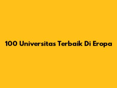 100 Universitas Terbaik Di Eropa