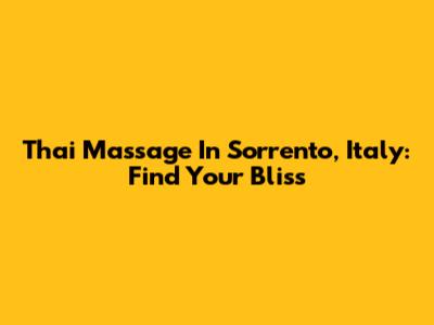 Thai Massage In Sorrento, Italy: Find Your Bliss