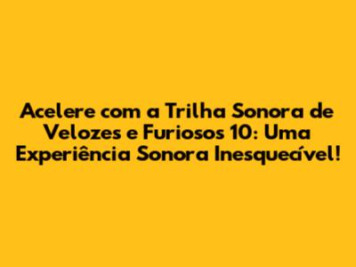 E o mais legal é que a trilha sonora de Velozes e Furiosos 10 não é só para quem vai ao cinema. Essas músicas são feitas para você ouvir onde quiser: no carro, na academia, enquanto estuda ou relaxa. Elas têm o poder de transformar seu dia, te dando um gás extra ou te ajudando a relaxar. É como ter um pedacinho da adrenalina e da emoção do filme com você o tempo todo. Então, se você quer reviver os momentos mais intensos de Velozes e Furiosos 10 ou simplesmente quer uma playlist cheia de energia e batidas contagiantes, essa trilha sonora é para você. Prepare-se para acelerar o volume e sentir a potência sonora que só Velozes e Furiosos pode oferecer!