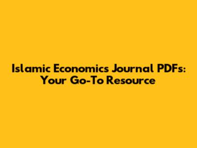 Islamic Economics Journal PDFs: Your Go-To Resource