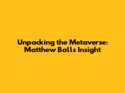 So, who is Matthew Ball, and why should you care about his take on the metaverse? Well, guys, Matthew Ball is a venture capitalist, author, and all-around metaverse expert. He's basically been living and breathing this stuff for years. He's written extensively on the topic, and his insights are highly respected in the industry. He's not just some random dude; he's a thought leader who's been instrumental in shaping the conversation around the metaverse.