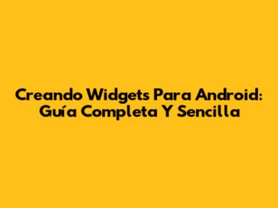 Creando Widgets Para Android: Guía Completa Y Sencilla