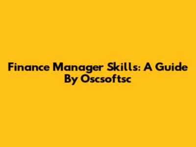 Finance Manager Skills: A Guide By Oscsoftsc