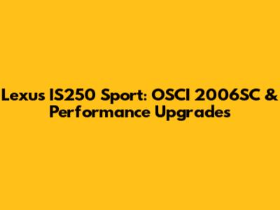 Lexus IS250 Sport: OSCI 2006SC & Performance Upgrades