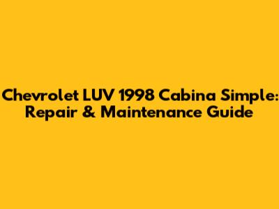 Chevrolet LUV 1998 Cabina Simple: Repair & Maintenance Guide
