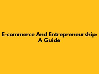 E-commerce And Entrepreneurship: A Guide