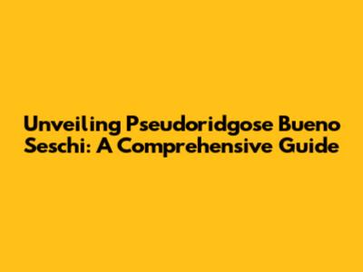 Unveiling Pseudoridgose Bueno Seschi: A Comprehensive Guide