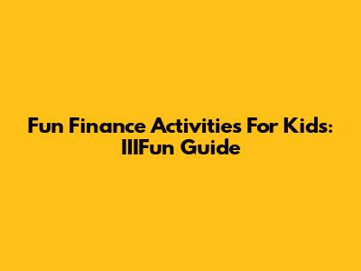 Fun Finance Activities For Kids: IIIFun Guide
