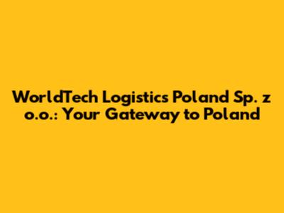 So, what exactly is WorldTech Logistics Poland Sp. z o.o.? Simply put, it's a company based in Poland that specializes in providing comprehensive logistics services. This means they handle everything from transportation and warehousing to supply chain management and distribution. Think of them as your all-in-one solution for getting your goods where they need to be, when they need to be there, all while keeping things efficient and cost-effective.