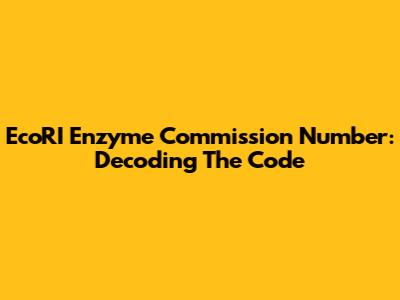 EcoRI Enzyme Commission Number: Decoding The Code